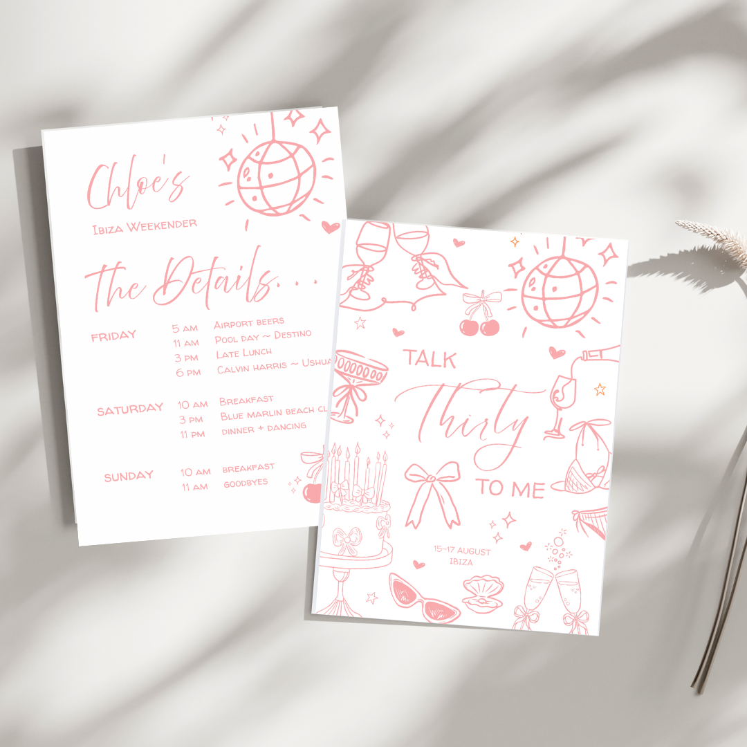 ✨ Talk Thirty to Me – Personalised 30th Birthday Weekend Itinerary | Digital Download | Pink Version ✨